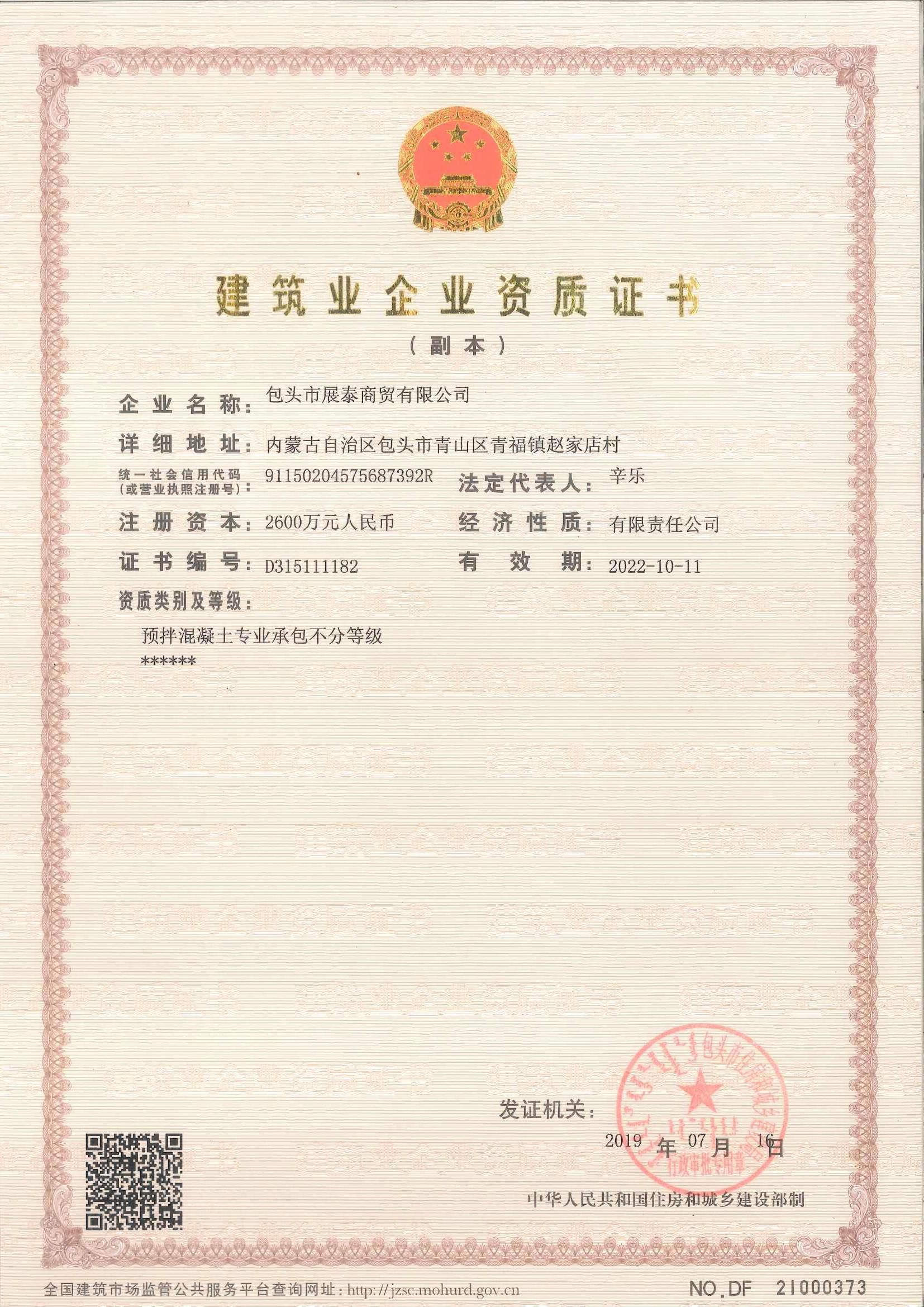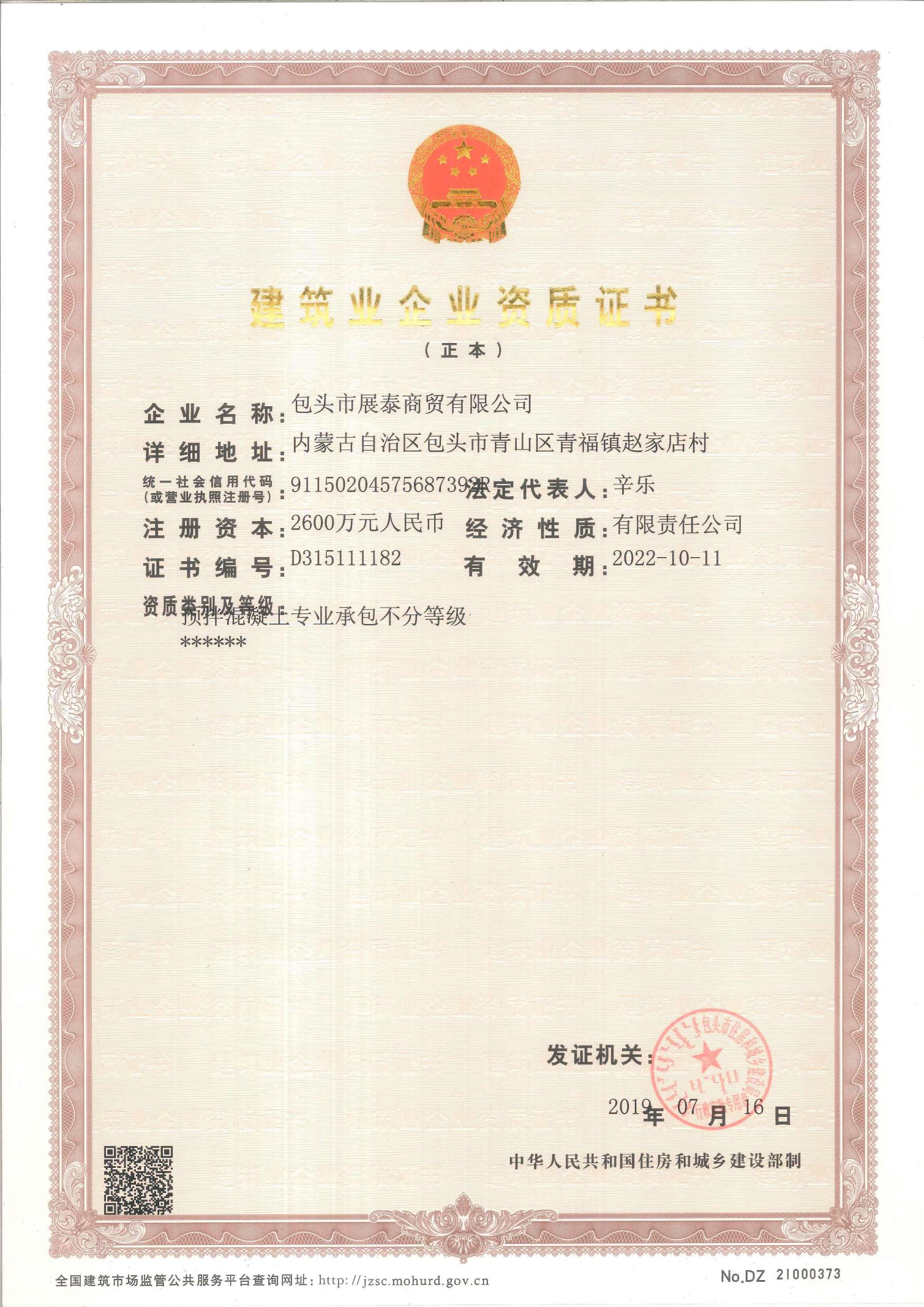建筑業(yè)企業(yè)資質證書